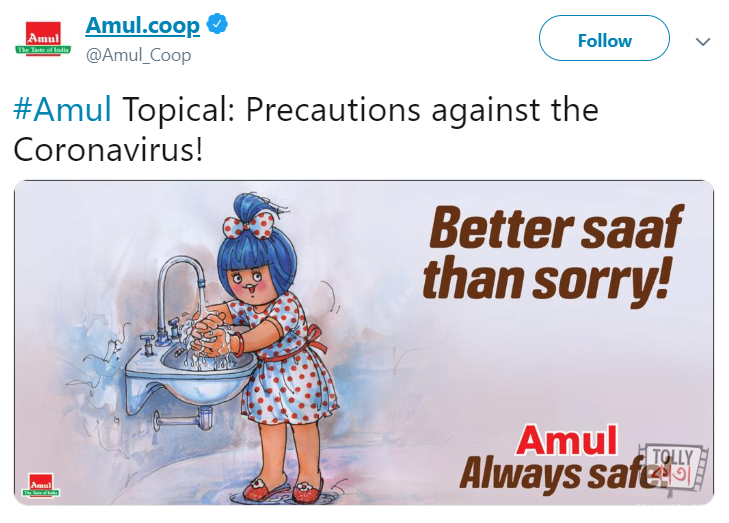 AMUL published a series of creatives encouraging people to stay at home, wash their hands and to greet people with Namaste.