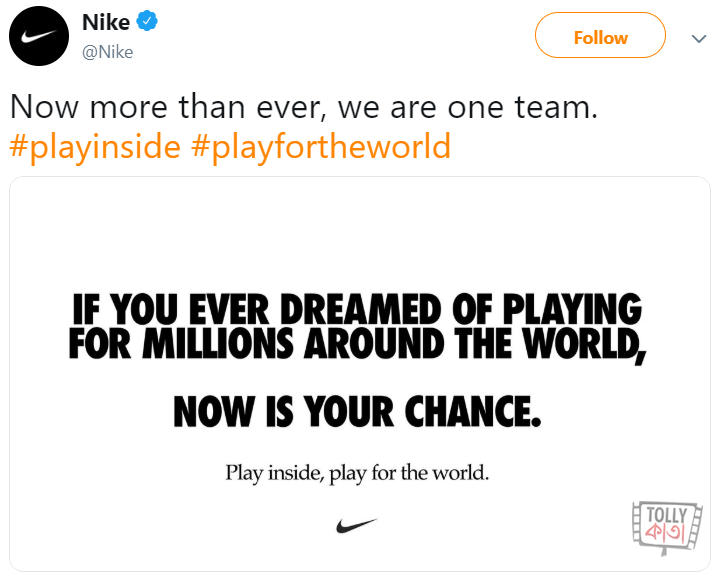 NIKE's campaign urging people to play inside has to be one of the best simple and effective campaign on COVID-19.