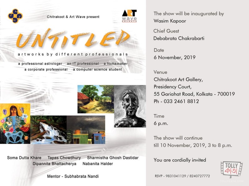 Five different people, five different professions, five different age groups, but one common passion is what has brought them together. The love for art is the string that binds them together – Soma Dutta Khare- a professional astrologer, Tapas Chowdhury- an IT professional, Sharmistha Ghosh Dastidar- a home maker, Dipannita Bhattacherya- a corporate professional and Nabanita Halder - a Computer Science student, under the mentorship of Artist Subhabrata Nandi at ‘Art Wave’, have organised a painting exhibition called, ‘Untitled’, from the 6th of November to 10th of November at the Chitrakoot Art Gallery, Ballygunge.